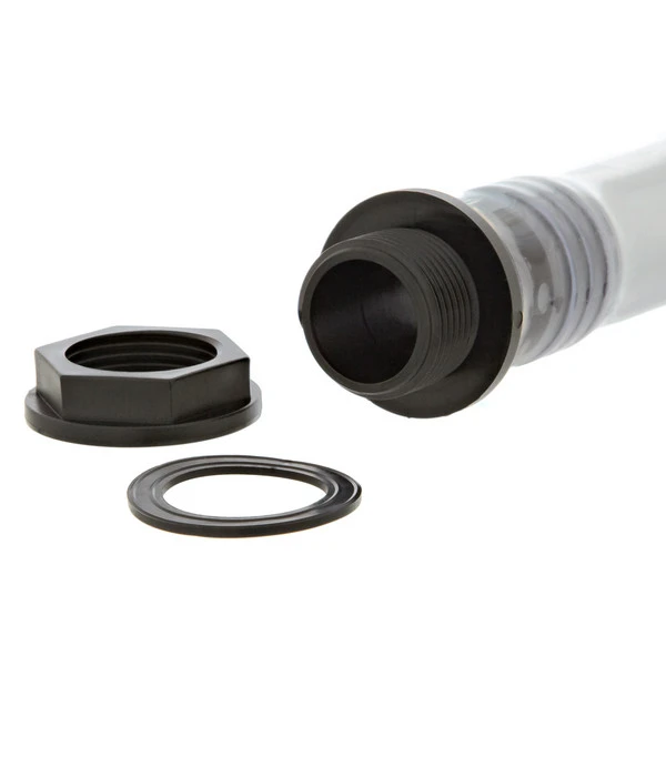 Um zwei Regentonnen für den Garten miteinander zu verbinden, braucht man ein flexibles Verbindungsstück wie dieses. Es besteht aus einem stabilen, aber flexiblen 30 cm langen Gummischlauch, an dessen Ende zwei Dichtungen mit jeweils einer Kontermutter befestigt sind.