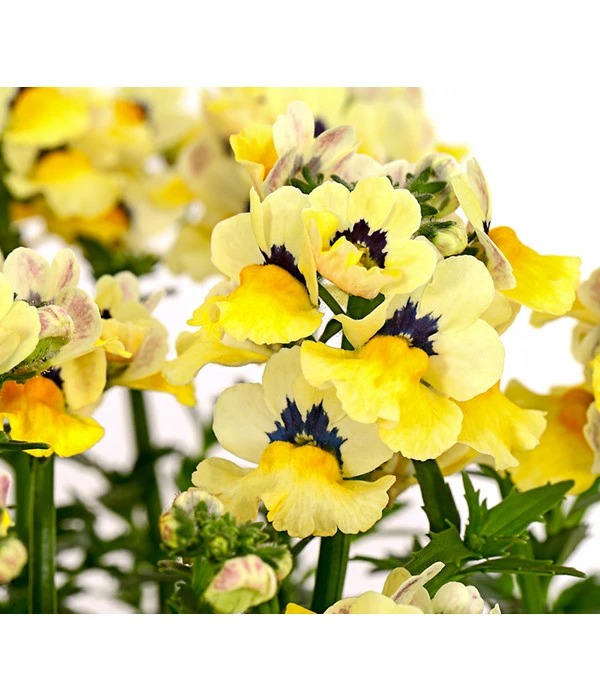 Nemesien lieben die Sonne, deshalbs sollten Sie den buschig wachsenden Beet- und Balkonpflanzen einen warmen, sonnigen oder auch halbschattigen Standort geben. Ansonsten sind Nemesien recht pflegeleicht. Sie müssen lediglich für eine ausreichende Versorgung mit Wasser sorgen. Regelmäßige Düngergaben, etwa einmal pro Woche, halten die Pflanzen in Blühlaune. Zupft man Verblühtes immer wieder aus, darf man sich bis tief in den Herbst über viele neu ‚Spiegelchen‘ freuen. Wer länger von etwas von der Pflanze haben will, sollte die Nemesien gegen Ende der ersten Blüte kräftig zurückschneiden. Auch wenn es schwer fällt die üppige Blütenpracht zu stutzen, es lohnt sich. Denn die Pflanze blüht ein weiteres mal auf, dieses mal bis in den Spätsommer hinein.