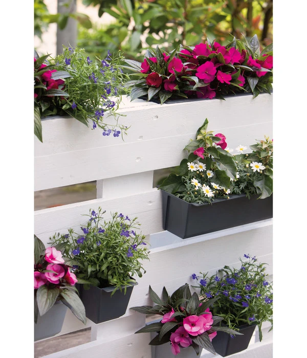 Pure Gestaltungsfreiheit für das florale Ambiente zuhause bietet Ihnen der innovative Kunststoff-Pflanzkasten Easy von Geli. Kaufen Sie sich jetzt Ihre Easy-Pflanzkästen und es spielt keine Rolle mehr, ob sie Zäune, Fensterbretter, Geländer oder mehr gestalten wollen, denn die Pflanztöpfe Easy von Geli passen immer. Mit ihrem originellen Hängesystem eignen sie sich ebenso perfekt für die Zwischenräume von Europaletten, damit sind Ihrer Dekorationsfantasie endlich keine Grenzen mehr gesetzt. Sie haben nur wenig Platz zur Verfügung? Kein Problem, mit dem Pflanztopf Easy müssen Sie dennoch nicht auf Pflanzen und Kräuter verzichten.