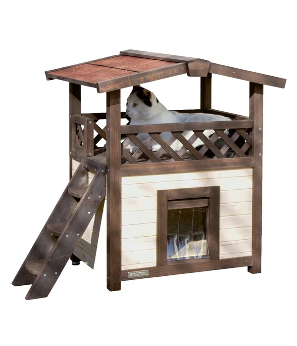 “Gemütliches Häuschen im Grünen an nette Katzendame oder aparten Salonlöwen zu vermieten“. Auch wenn Ihre Samtpfote diesen Satz nicht lesen kann, wird sie das hübsche Häuschen sofort beziehen und viele, viele Stunden darin verbringen. Denn das Kerbl Katzenhaus 4-Seasons Deluxe erfüllt zwei Herzensbedürfnisse Ihrer Katze: Erstens kriecht sie gerne in Höhlen, Kisten und ähnliches, um dort ganz ungestört zu schlummern, so dass sie sich in dem Raum im Erdgeschoss wunderbar geborgen fühlen wird. Katzen lieben es aber genauso, irgendwo entspannt zu liegen und mit einem Auge ihre Umgebung im Blick behalten: wohin ihr Mensch wohl geht, ob der Nachbarshund in den Garten kommt oder ob der Vogel von dem Ast herunterfliegen und im Rasen landen wird. Deshalb wird Ihre Samtpfote ebenso viele Stunden gerne auch auf der Dachterrasse verbringen. Machen Sie Ihrer geliebten Samtpfote die Freude und schenken Sie ihr das Kerbl Katzenhaus 4-Seasons Deluxe!