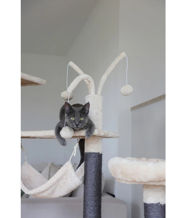 Sie wollen Ihrem Liebling nicht nur einen Kratzbaum bieten, sondern ein wahres Paradies zur Verfügung stellen? Der Kratzbaum Creativ Adventure von KERBL wird Ihren Stubentiger in Begeisterung versetzen. Auf diesem Accessoire mit sechs Ebenen kann sich Ihre Katze austoben, mit den kleinen Kugeln spielen oder ihre Krallen schärfen. Auch zum entspannten Beobachten der Umgebung findet Ihr Haustier bestimmt ein Plätzchen. Für das Erholungsschläfchen sind die Liegefläche und die gemütliche Höhle mit kuscheligem Plüsch ideal. Ihre Katze wird den Kratzbaum Creativ Adventure bestimmt schnell in Beschlag nehmen und sich gerne darin vergnügen.