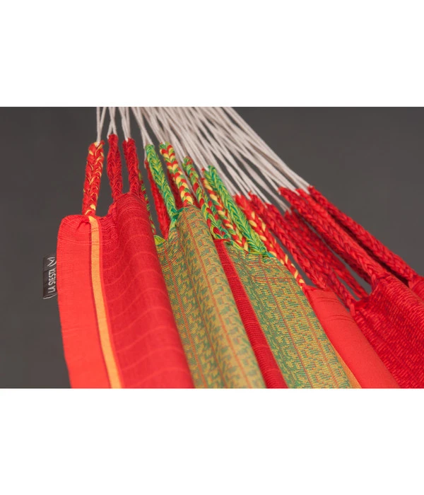 Die Fertigung und der tägliche Gebrauch von Hängematten aller Art hat eine lange Tradition in Mittel- und Südamerika. Auch die Familien-Hängematte Flora ist ganz in diesem Stil gefertigt, von dem einzigartigen Web-Design bis zu den vielen traditionell von Hand geflochtenen Zöpfen, die besonders haltbar sind und für die optimale Gewichtsverteilung sorgen. Die extra verstärkten Webkanten machen die Familien-Hängematte besonders reißfest, so dass Sie garantiert viele, viele Sommer mit Ihren Lieben darin verbringen können. Und wir drücken die Daumen, dass es alles Jahrhundertsommer werden!