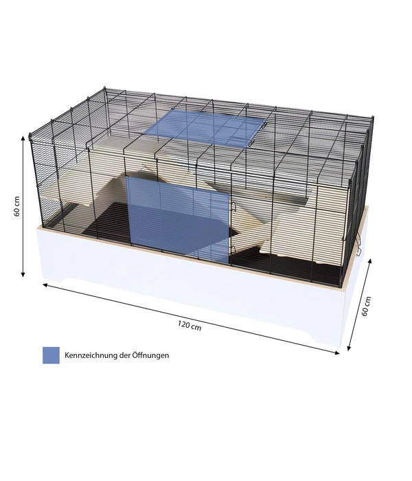 Sie suchen nach einer gemütlichen Behausung für Ihre Ratten? Dann haben Sie sie mit dem Skyline Nagerkäfig Maximus 120 jetzt gefunden. Die großen Etagen bieten Ihren Kleintieren viel Platz zum Spielen, Ausruhen und Toben, wodurch sie sich rundum wohlfühlen werden. Dank der breiten Leitern sind die Etagen zudem sehr komfortabel erreichbar. Mithilfe der zwei großzügigen Klappen im vorderen und oberen Bereich gestaltet sich das Herausholen Ihrer Lieblinge für den Auslauf oder für Streicheleinheiten kinderleicht. Genauso gut können Sie Ihre Ratten auf diese Weise im Nu mit Leckereien versorgen und sie dann beim Fressen beobachten.